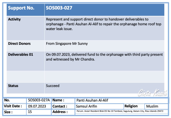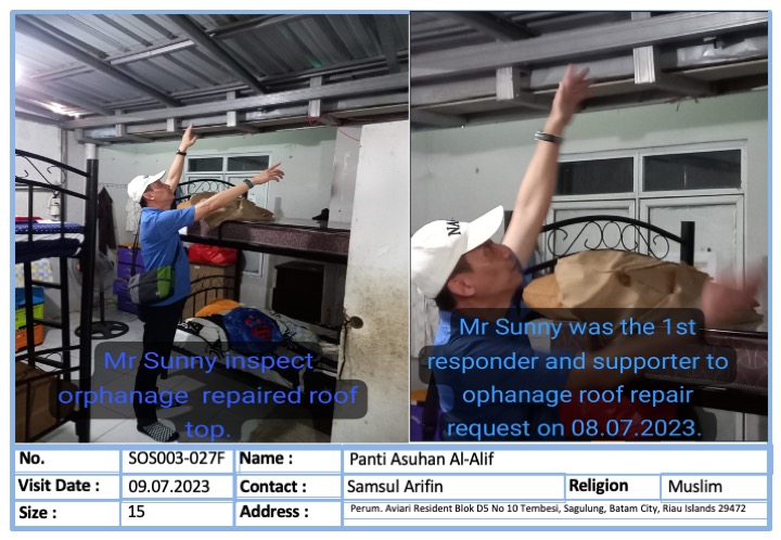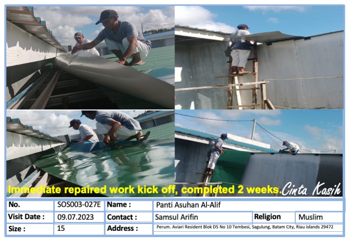 To repair Orphanage Damaged Roof Top
